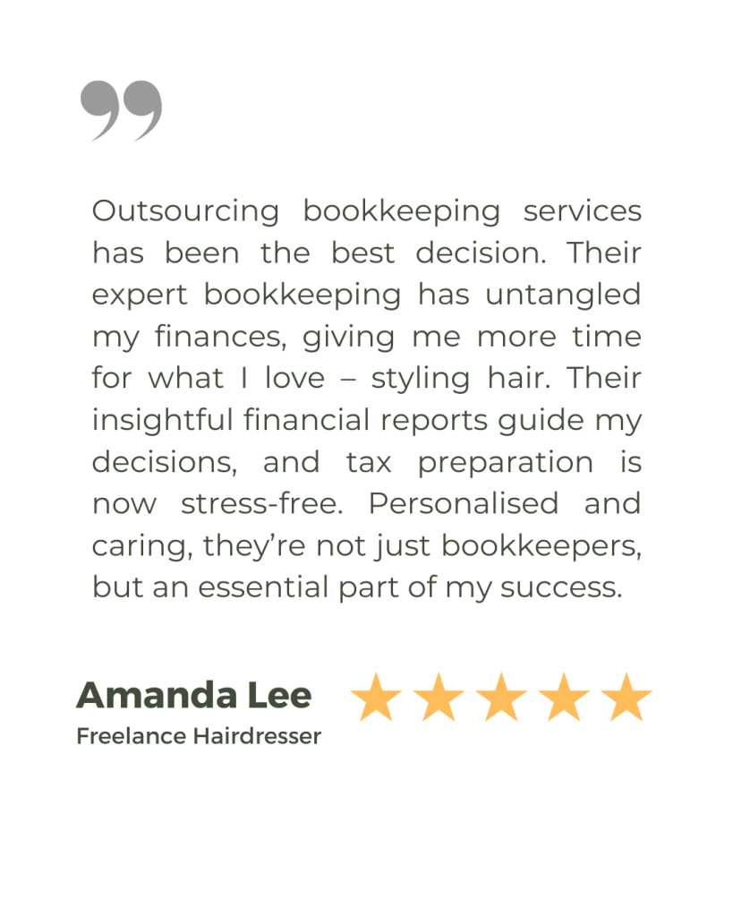 Outsourcing bookkeeping services has been the best decision. Their expert bookkeeping has untangled my finances, giving me more time for what I love – styling hair. Their insightful financial reports guide my decisions, and tax preparation is now stress-free. Personalised and caring, they’re not just bookkeepers, but an essential part of my success.